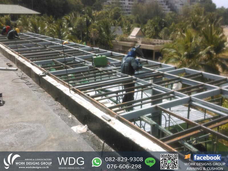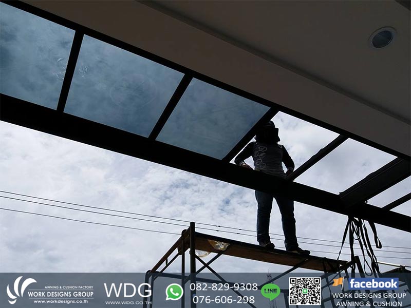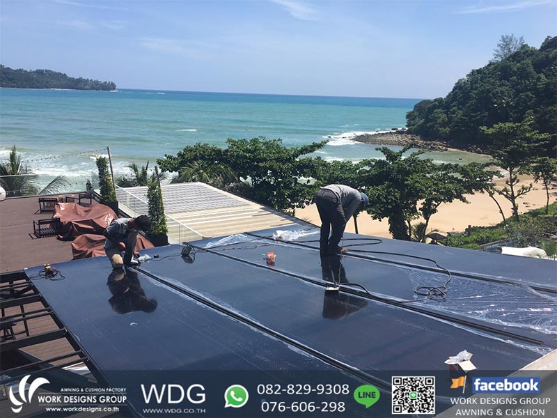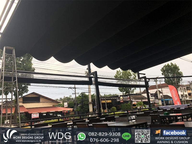 *** เป็นงานหลังคาพับเก็บได้ เหมาะสำหรับพื้นที่ขนาดใหญ่ สามารถเปิด-ปิด รับแสง ระบายอากาศ และป้องกันฝน ได้รับความนิยมมากสำหรับร้านอาหาร บาร์ และสวนหย่อม