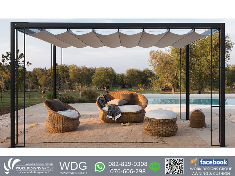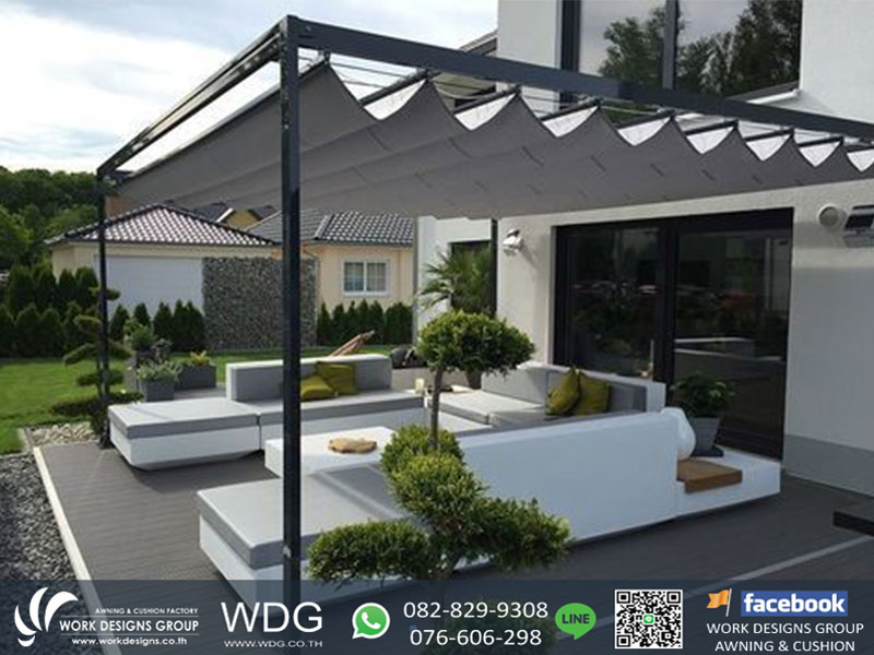 รับผลิตหลังคาผ้าใบพับเก็บ (Pergola )