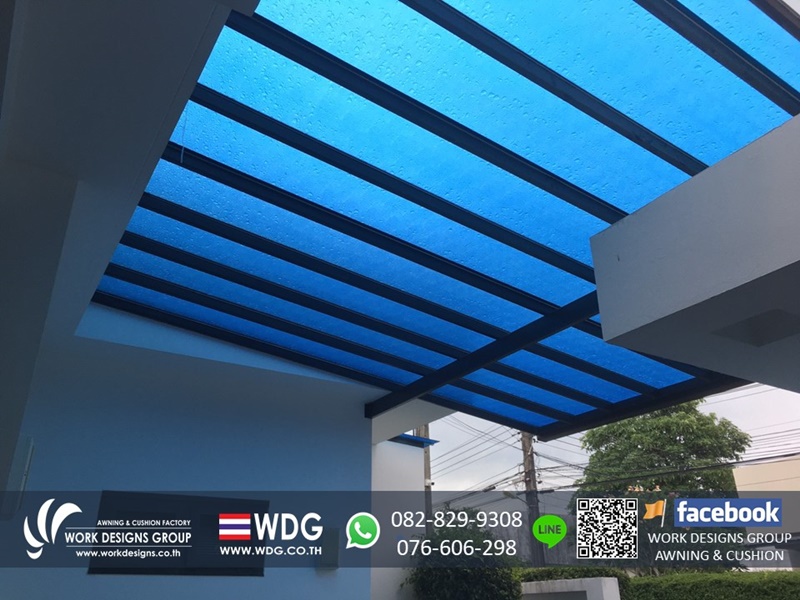 กันสาดติดผนัง มีรูปทรงให้เลือกหลากหลายแบบ ผ้าใบระบายอากาศได้ดีไม่ร้อน ฝนตกไม่เสียงดัง